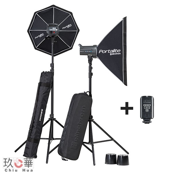 2 X D-LITE RX 4 單燈頭 1 X 19350 無線發射器 2 X 26129 65x65cm無影罩(單層) 1 X 33198 燈具袋(2入) 1 X 30162 燈架組(燈架x2、燈架袋x1) 1 X 26143 傘用反射罩(16cm/90度)