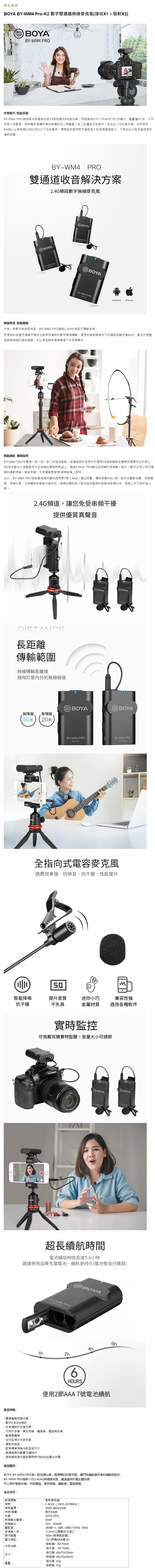 BOYA 博雅 BY-WM4 Pro-K2數字雙通道無線麥克風 (接收x1 發射x2) 立福公司貨