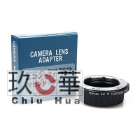 由日本著名轉接環製造商Kindai所研製;解決了大部份轉接環無限遠處無法對焦的缺點 ,並有安全卡榫可防轉接上之鏡頭在您無預警時掉落。非一般雜牌轉接環足以比擬!,是密合性最佳品質最好的轉接環。
