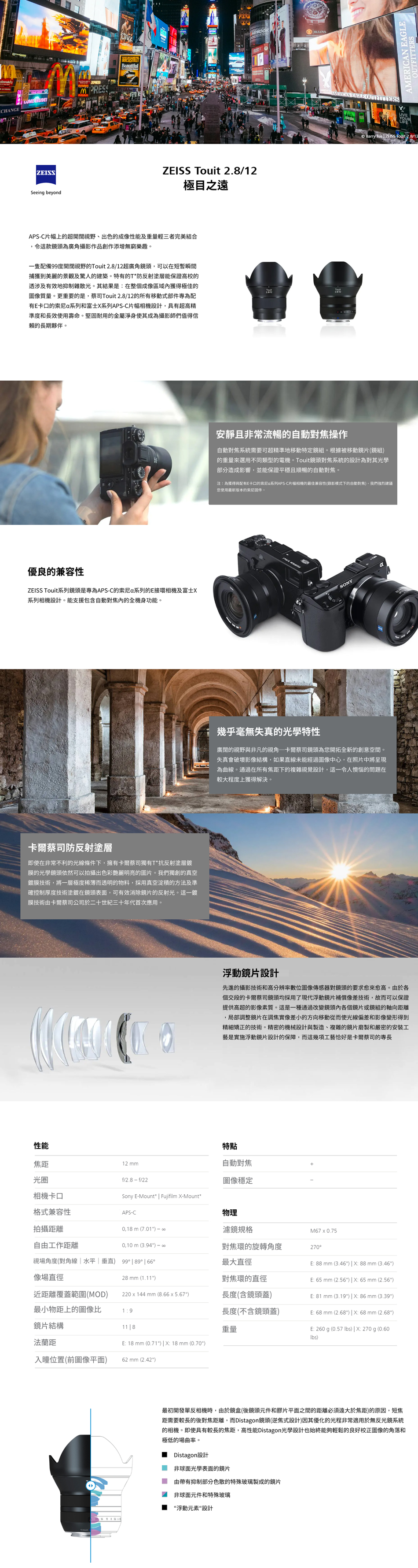 Zeiss 蔡司 Touit 12mm F2.8 Sony APS-C E接環專用鏡頭 正成公司貨