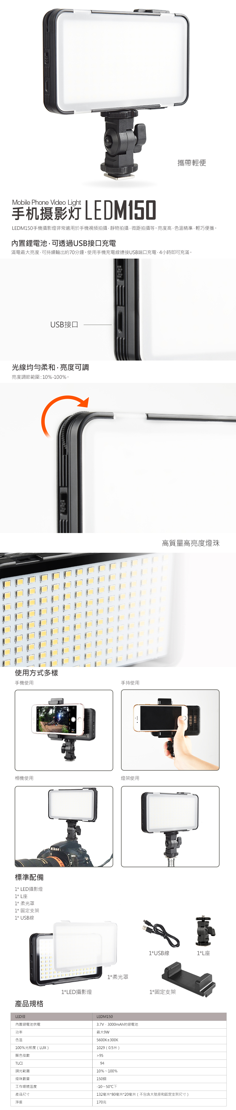 GODOX 神牛 LED M150 LED補光燈 持續燈 附手機夾 開年公司貨