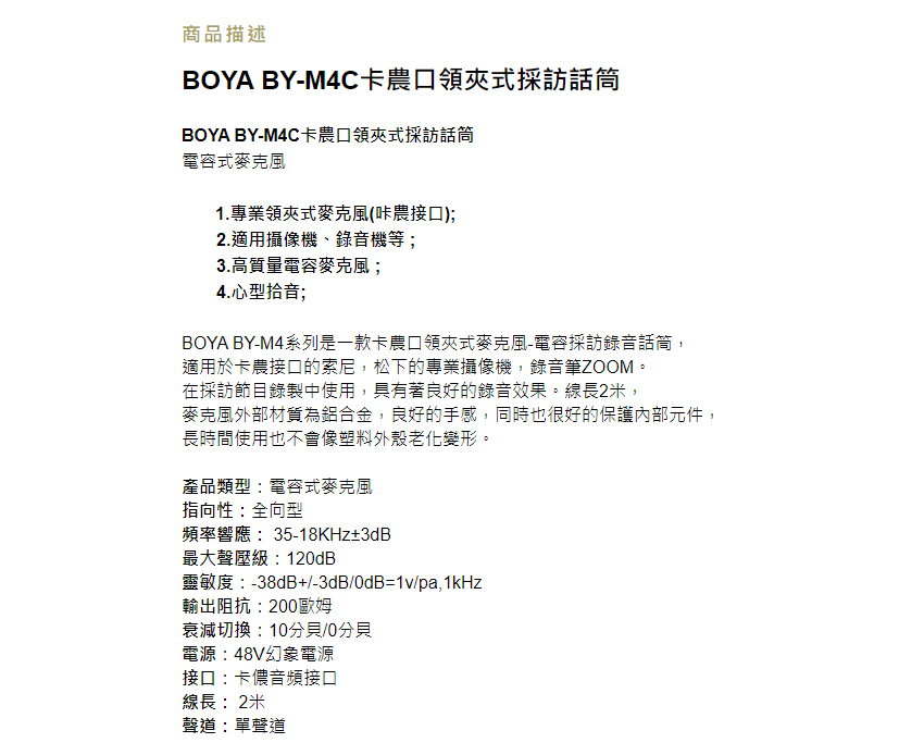 BOYA 博雅 BY-M4C卡農口領夾式採訪話筒 立福公司貨
