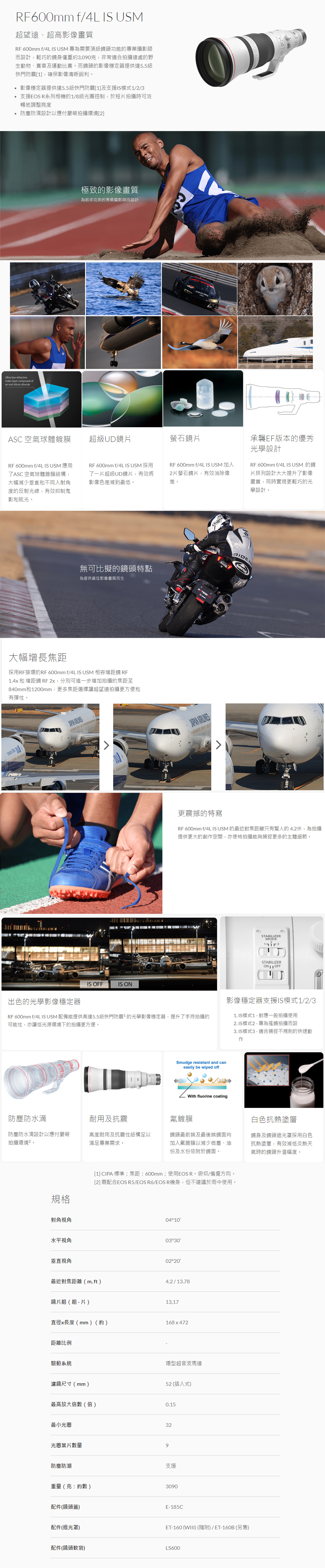 預購中 Canon RF 600mm F4L IS USM 佳能公司貨