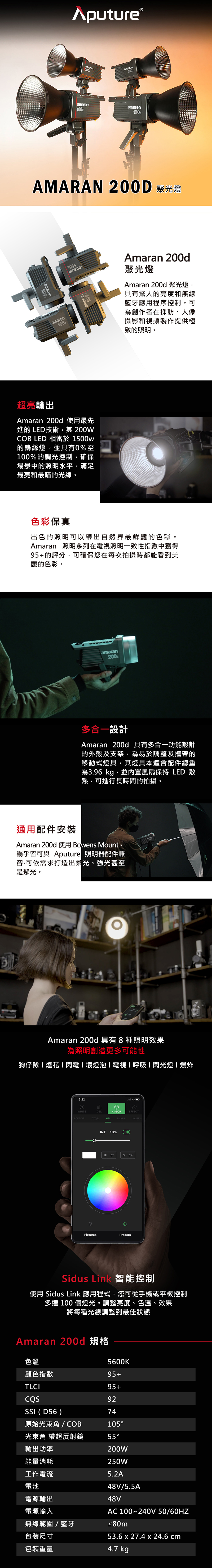 Aputure 愛圖仕 AMARAN200D 聚光燈 白光版 華曜公司貨
