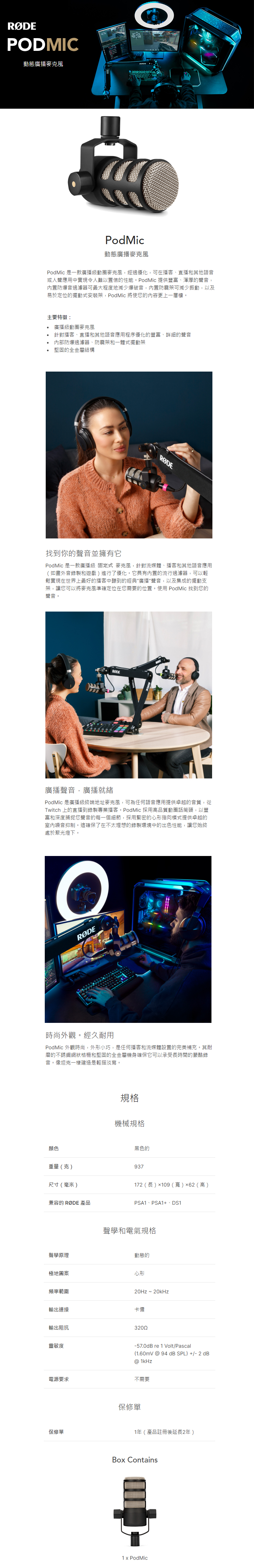 Rode PodMic 廣播級動圈式麥克風 正成公司貨 直播 節目錄製 PODCAST