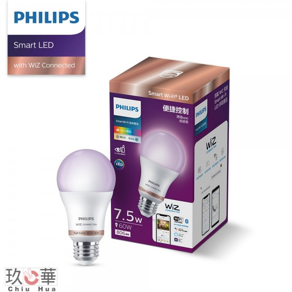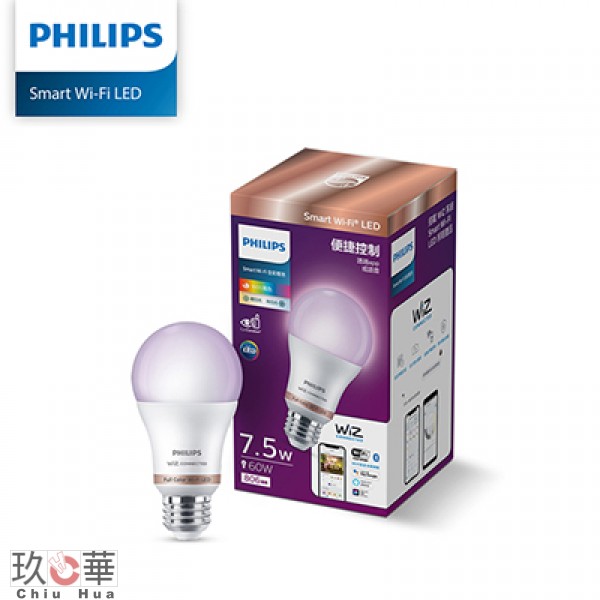 Philips 飛利浦 Wi-Fi WiZ 智慧照明 7.5W全彩燈泡 (PW004)