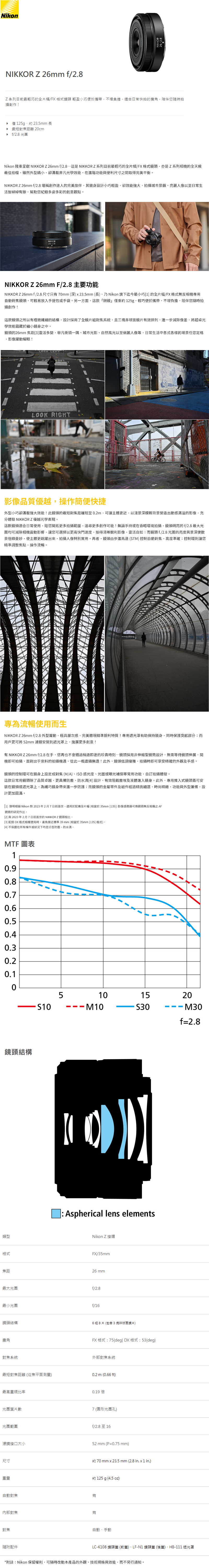 NIKON Z 26mm F2.8 最輕巧的全片幅/FX 格式鏡頭 國祥公司貨 定焦鏡 餅乾鏡