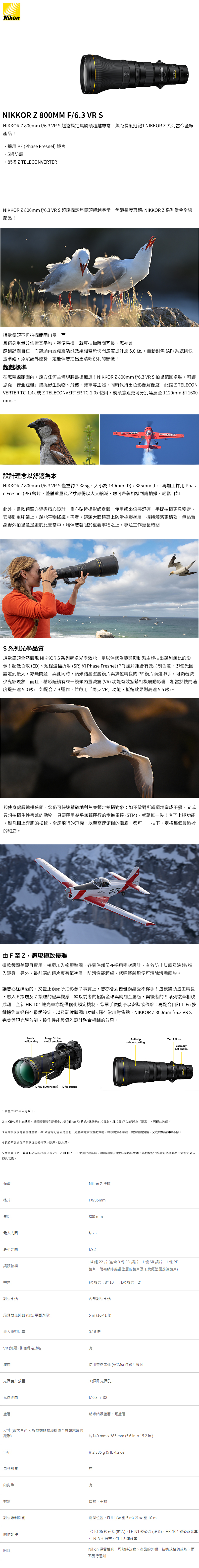NIKON NIKKOR Z 800mm F6.3 VR S 超望遠鏡頭 國祥公司貨
